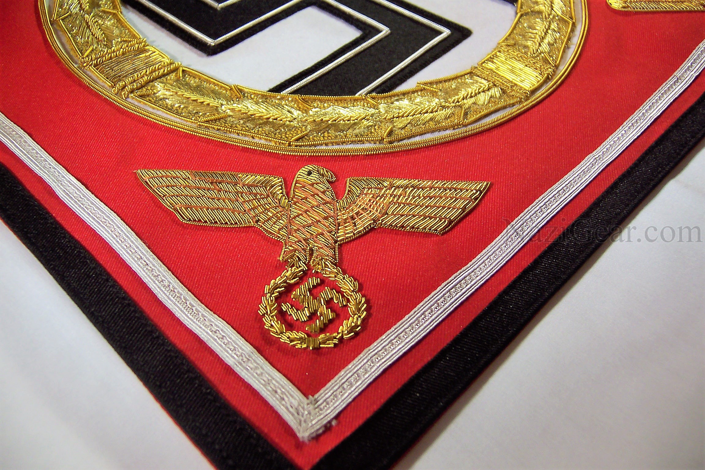 1×1 foot version of the Personal standard of Adolf Hitler hand sewn in gold embroidery