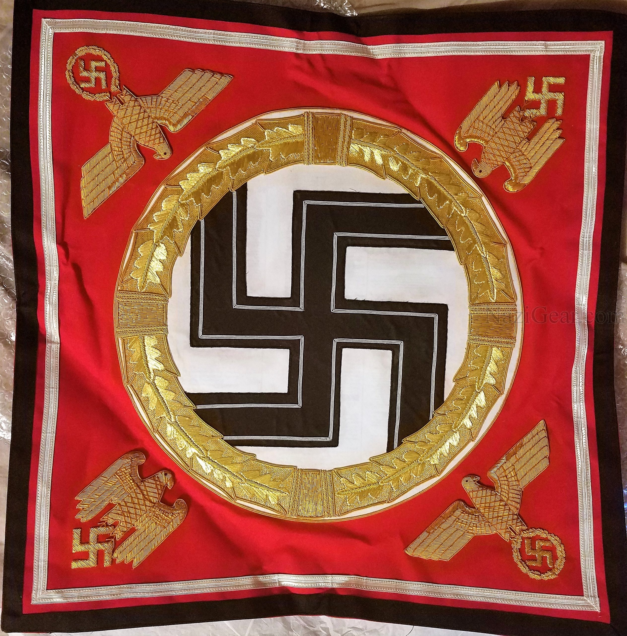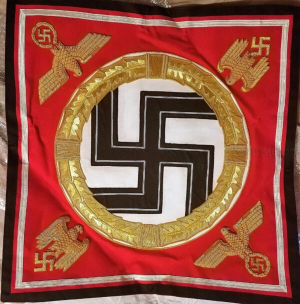 2×2 foot version of the Personal standard of Adolf Hitler hand sewn in gold embroidery